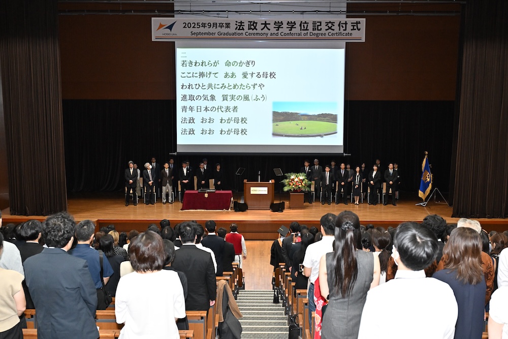 The Fall Graduation Ceremony was held on September 13, 2025. This ceremony, for undergraduates and graduate students, was held in Satta Hall of the Sotobori Building on the Ichigaya campus.