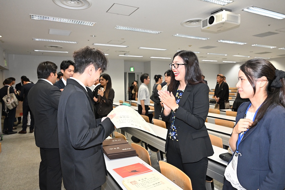 After the ceremony, each faculty and graduate school handed out degree certificates, and some graduates took commemorative photos with professors or peers.