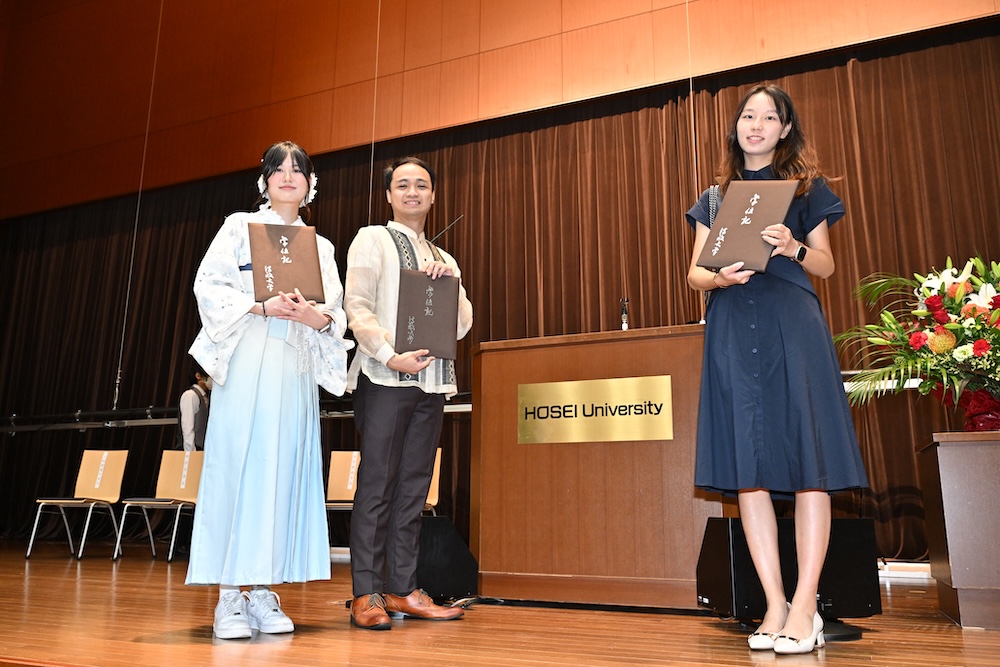 President Diana Khor encouraged the graduates in her congratulatory address, stating, “I would like you to keep one thing in mind: do your work responsibly, whether it is your dream job or just a stepping stone. The world you step into today presents many challenges—rising intolerance and inward attitudes, even amid globalization and increase in diversity. But I believe everything you have learned and experienced has prepared you to meet these challenges. I firmly believe that as Hosei alumni, you can exemplify our core value of “practical wisdom”—responding flexibly to change and making the world a better place for all.”